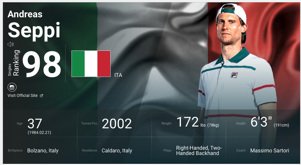권순우의 2회전 상대는 안드레아스 세피(이탈리아, 98위)로 결정되었습니다. 원래 예상했던 상대는 20번 시드인 캐나다의 오제 알리아심이었는데 세피가 알리아심을 3-1로 꺽고 2회전에 올라왔습니다. 올해 37세의 세피와는 작년에 하드코트에서 벌어진 신시내티 마스터 대회에서 2-1로 권순우가 승리했습니다.